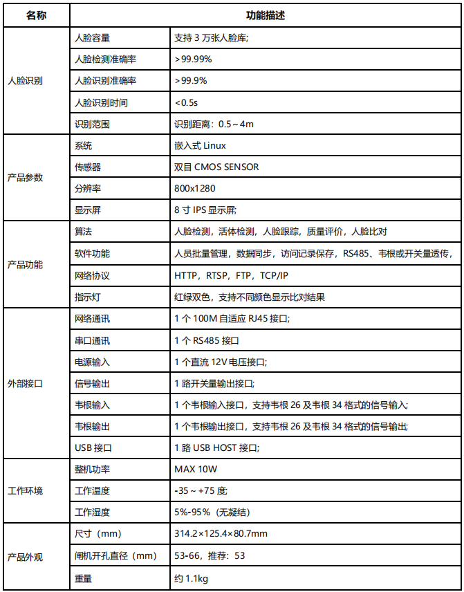 • TGJ02閘機式人臉識別終端